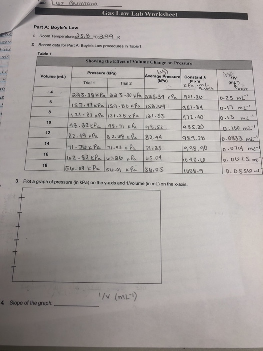 Solved Gas Law Lab Worksheet Part A: Boyle #39 s Law 2 Record Chegg com