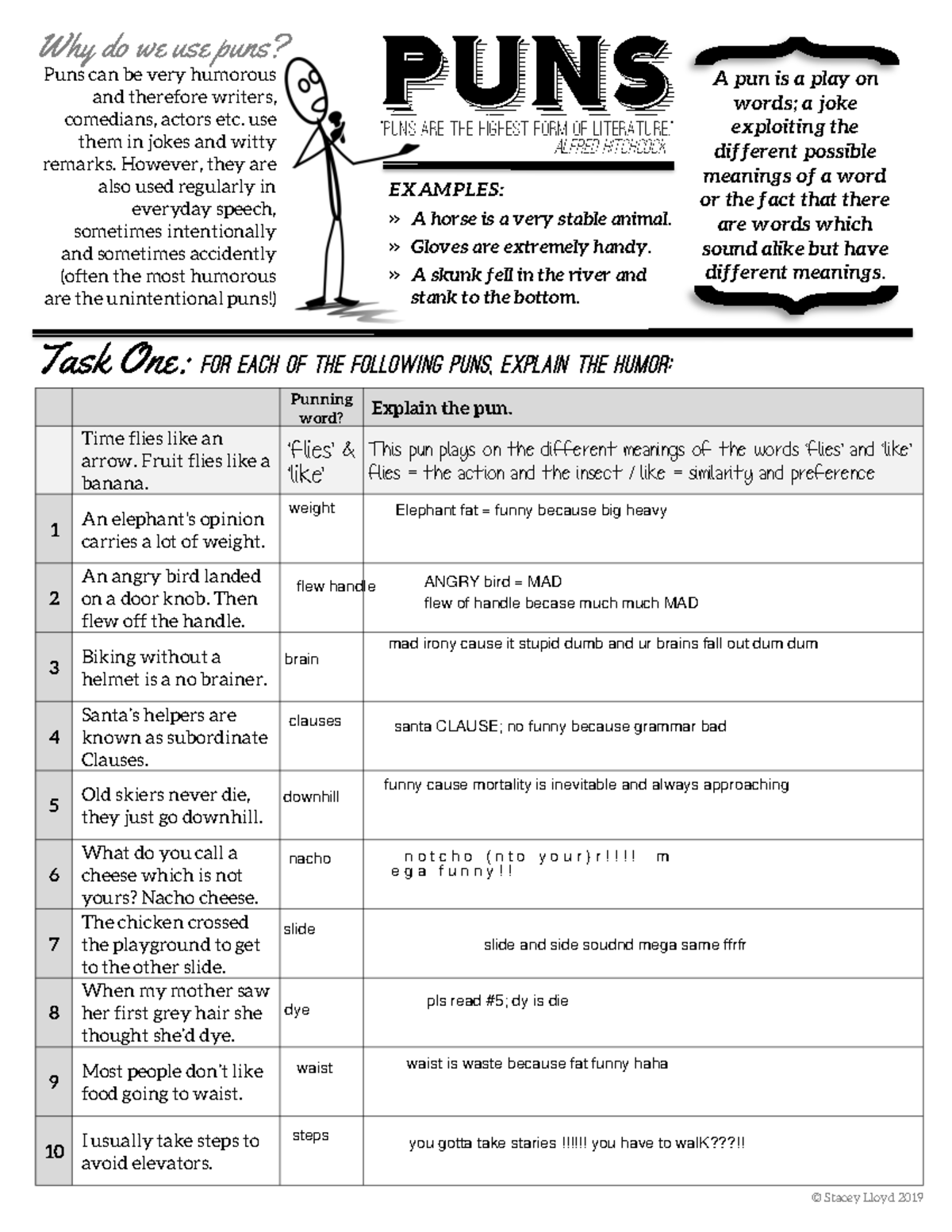 PUNS SHEET pdf Why do we use puns? Puns Puns can be very humorous and