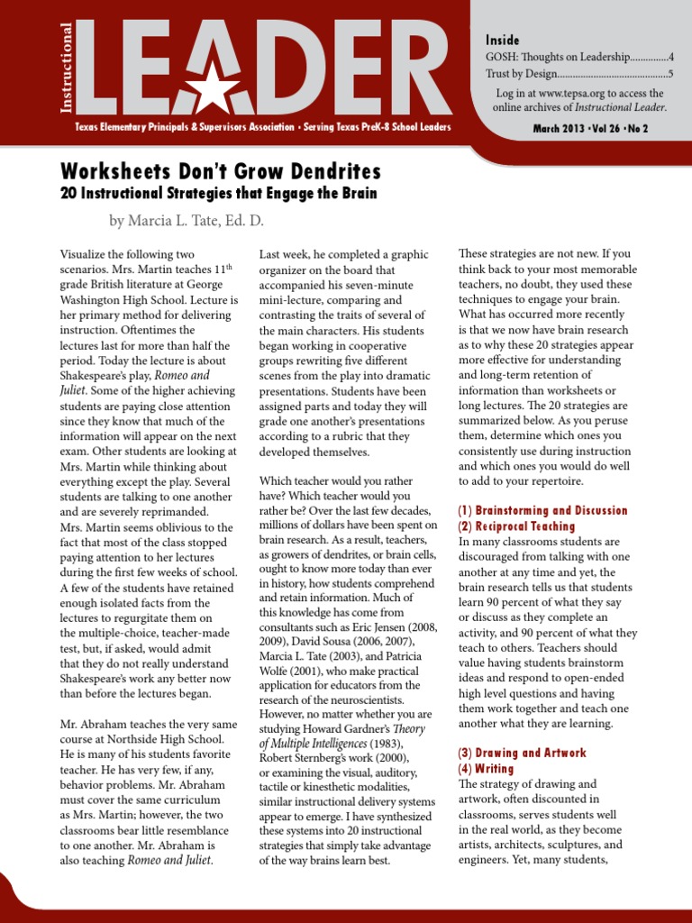 WORKSHEETS DON #39 T GROW Dendrites: 20 Instructional Strategies That