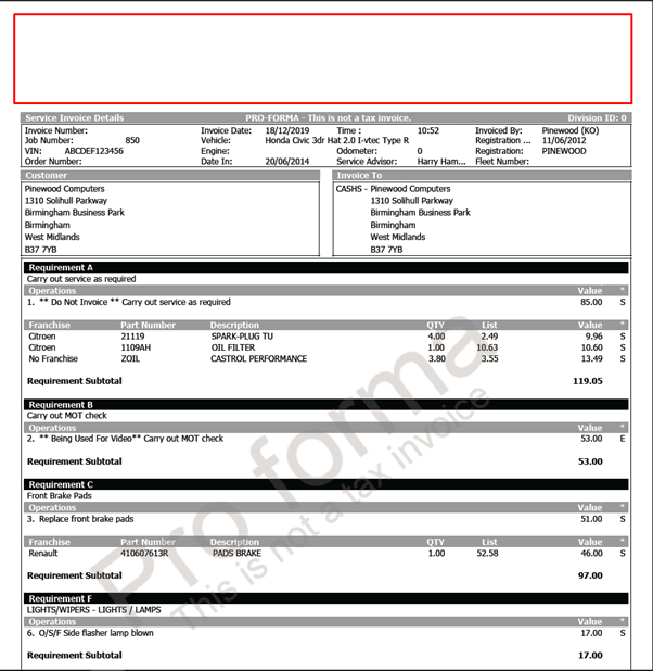 📝 The Invoice Header is Missing from a Workshop Invoice Pinewood