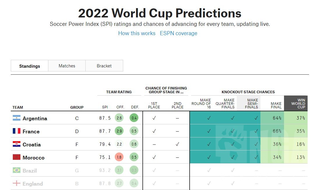 著名数据网站FiveThirtyEight的超级计算机预测,阿根廷夺冠率最高 NGA玩家社区