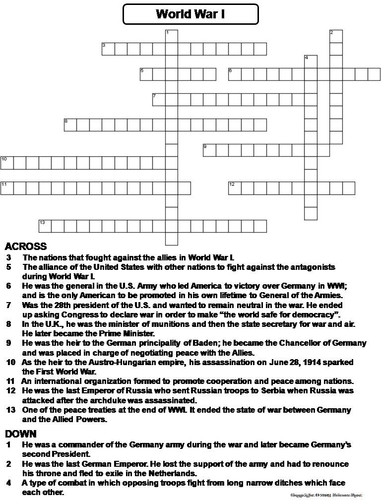 Here are some of the images for World War 1 Crossword Puzzle that we found in our website database.