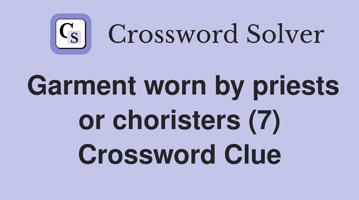 Garment worn by priests or choristers (7) Crossword Clue Answers