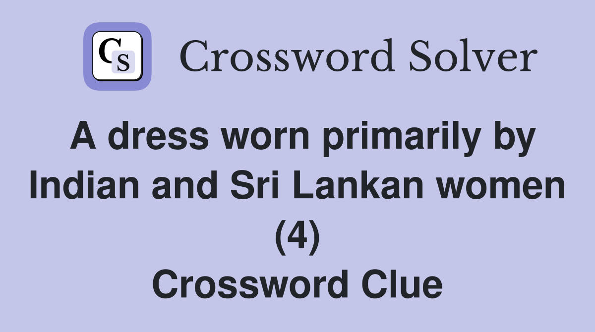 A dress worn primarily by Indian and Sri Lankan women (4) Crossword