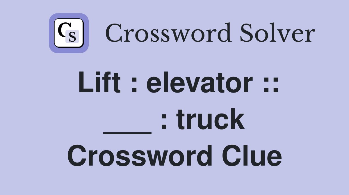 Lift : elevator :: : truck Crossword Clue Answers Crossword Solver