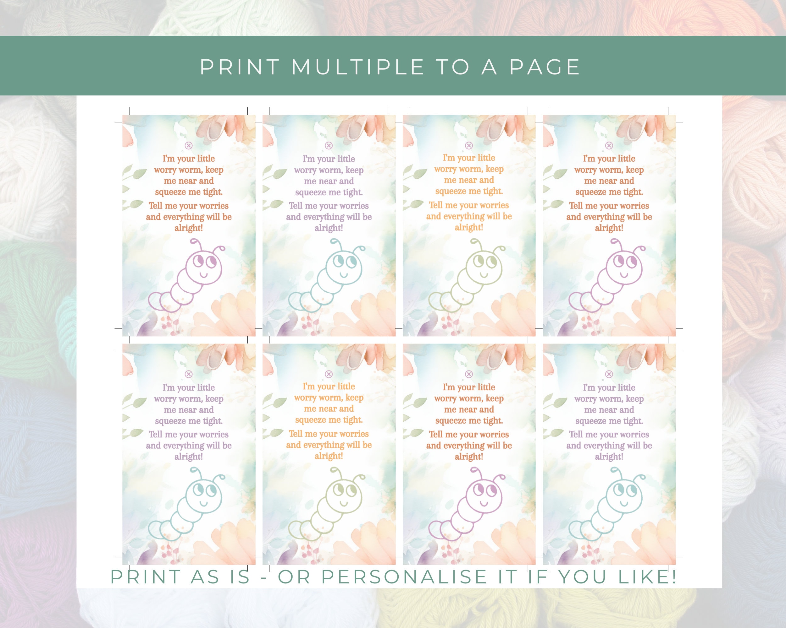 Worry Worm Poem DIY PDF Project 6 Cards Printable for Crochet Worry