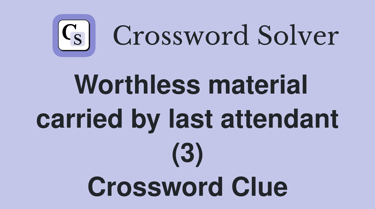 Worthless material carried by last attendant (3) Crossword Clue