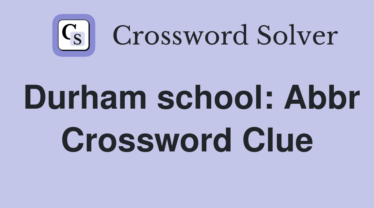Durham school: Abbr Crossword Clue Answers Crossword Solver