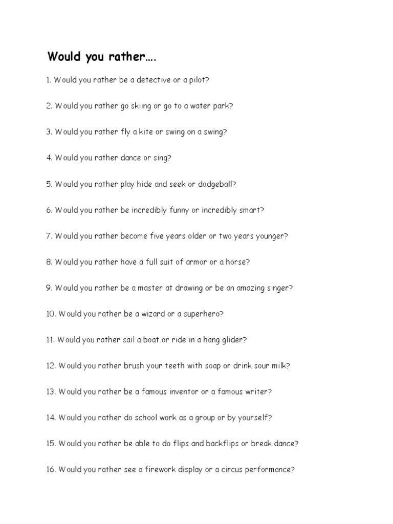 Here are some of the images for Would You Rather Printable that we found in our website database.