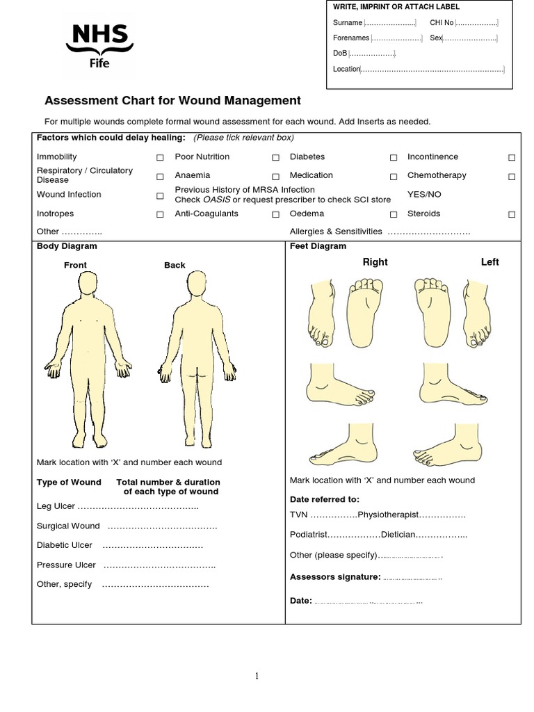 NHS Fife Assessment Chart For Wound Management PDF Wound Clinical