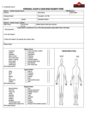 Fillable Online PERSONAL INJURY NEAR MISS INCIDENT FORM Fax Email
