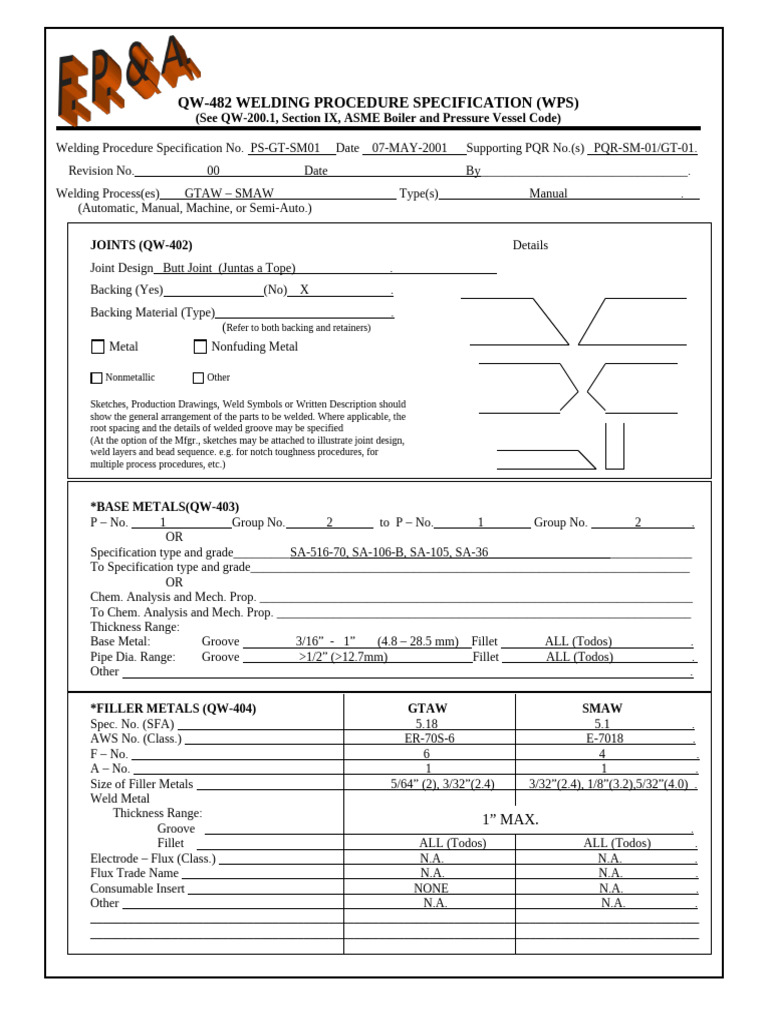 Sample WPS Form (GTAW SMAW) Welding Procedure Specification (WPS
