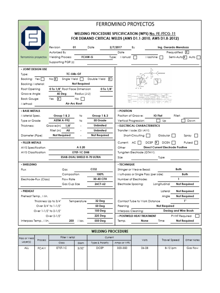 Welding Procedure Specification (WPS) PDF Construction Welding