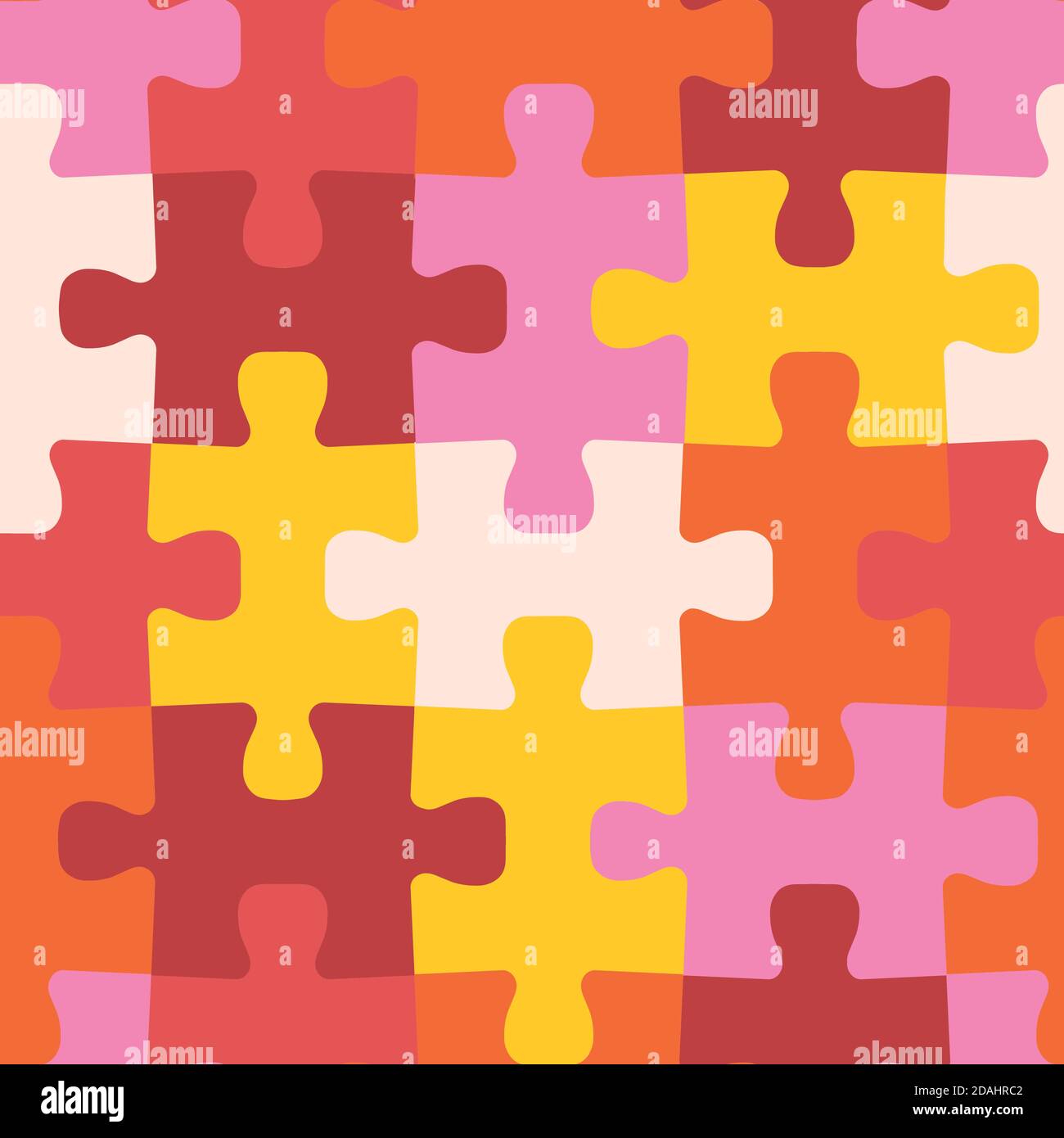 Colorful Seamless Puzzle Pattern Trendy Print with Hand Drawn Pieces