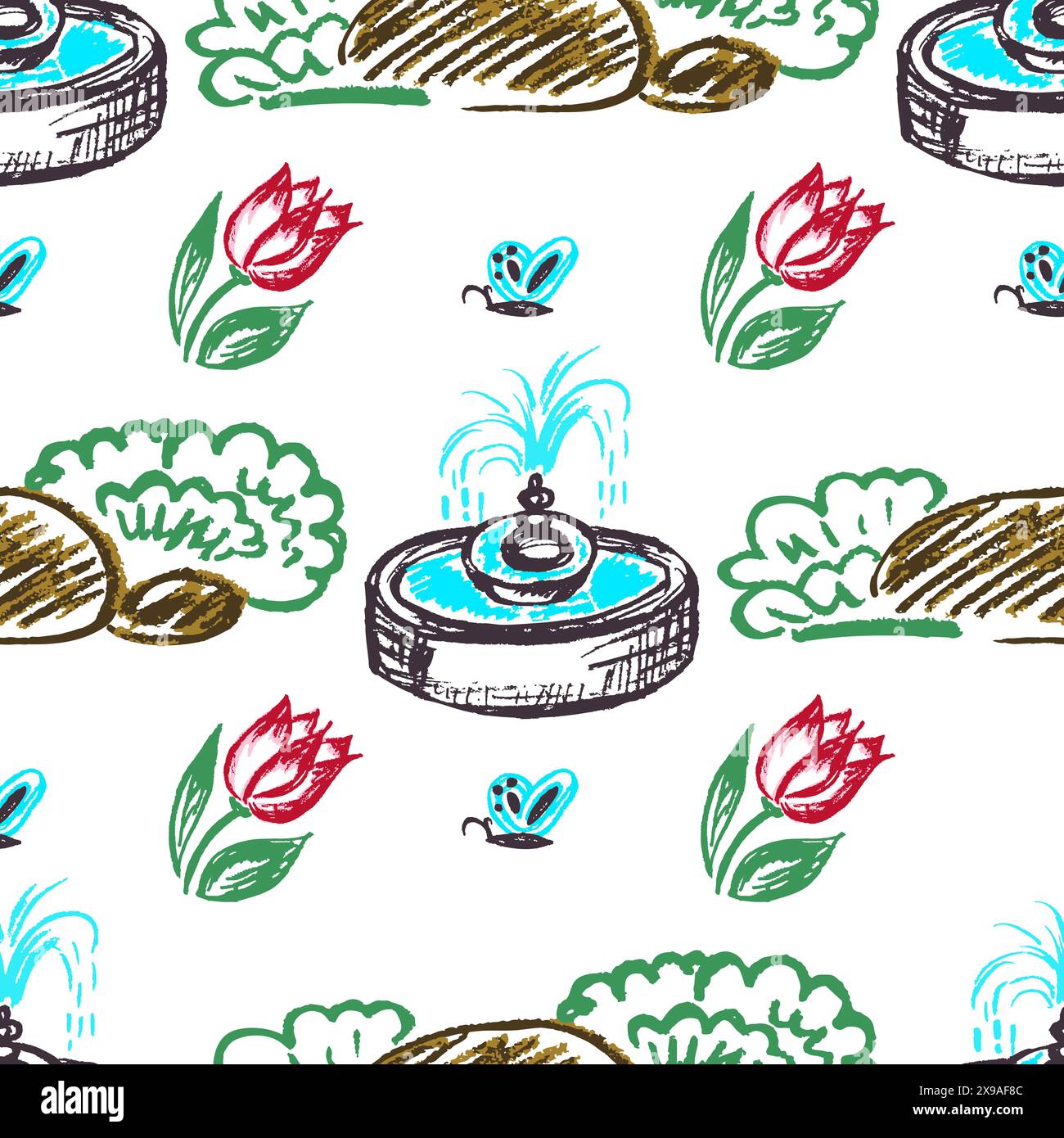 Seamless pattern Children #39 s drawings with wax crayons Fountains