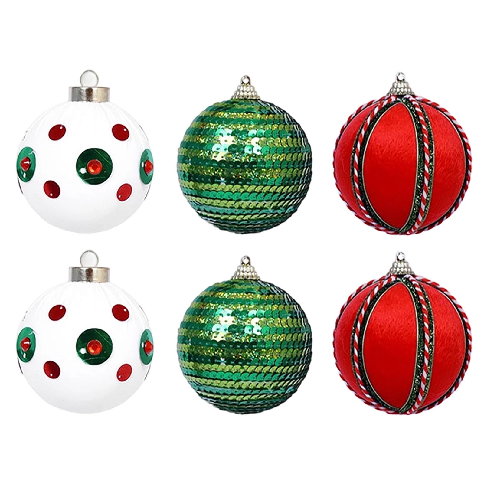 6PC Fabric Wrapped Foam Christmas Balls Elegant Decorations For