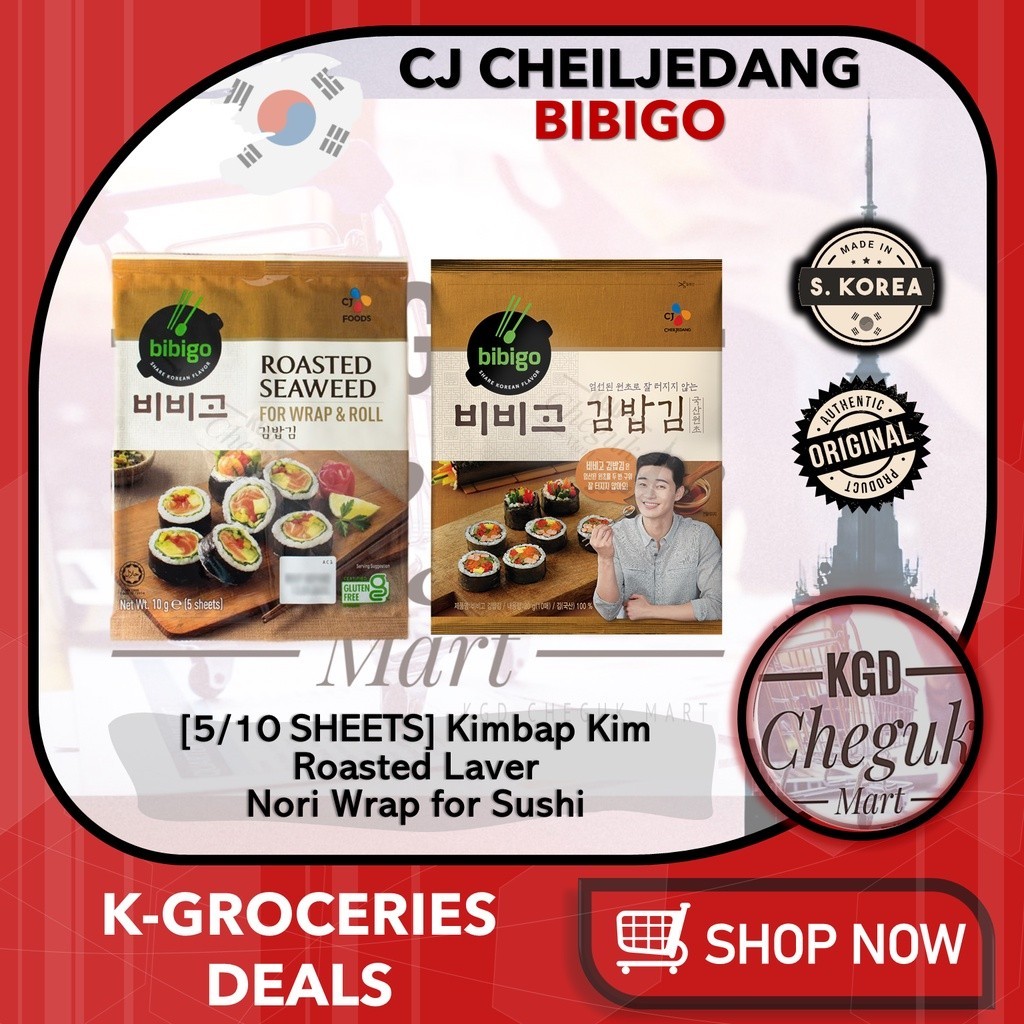 ☂ ஐ 5/10 SHEET CJ Bibigo Kimbap Kim Roasted Laver Korean Seaweed Nori