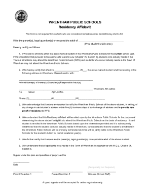 Fillable Online WRENTHAM PUBLIC SCHOOLS Residency Affidavit Fax Email