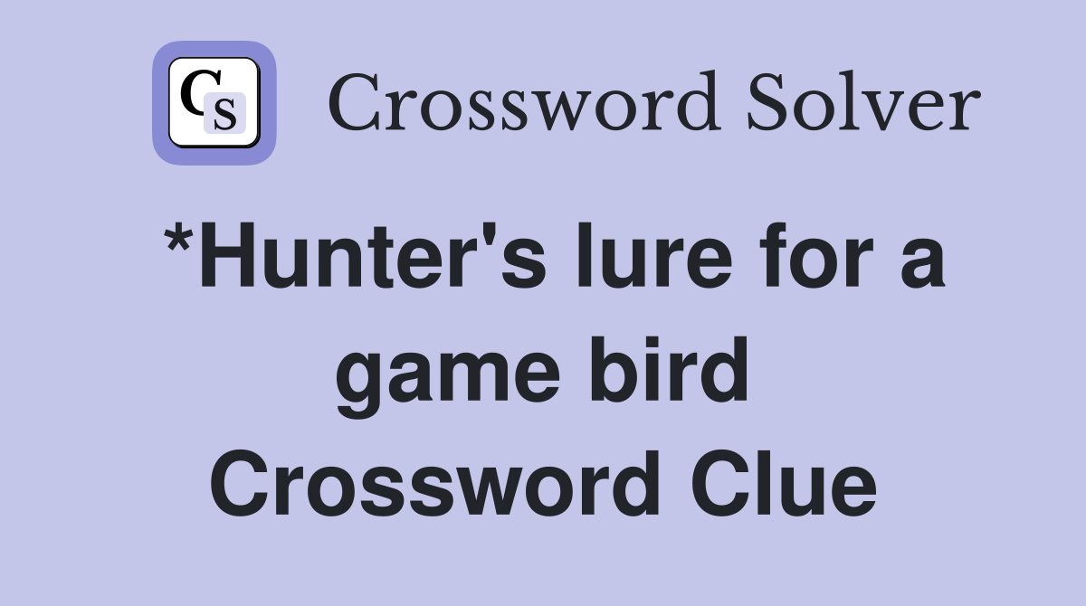 *Hunter s lure for a game bird Crossword Clue Answers Crossword Solver