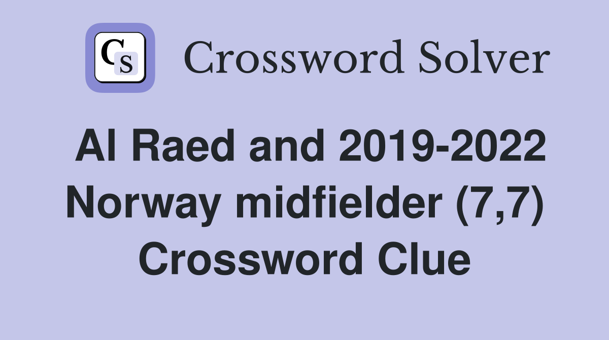 Al Raed and 2019 2022 Norway midfielder (7 7) Crossword Clue Answers