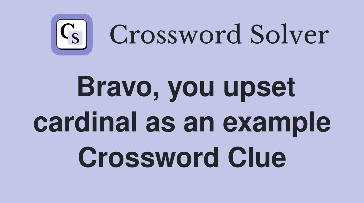 Bravo you upset cardinal as an example Crossword Clue Answers