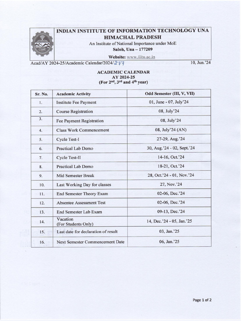 Academic Calendar B tech AY 2024 25 (2nd 3rd 4th Year) PDF