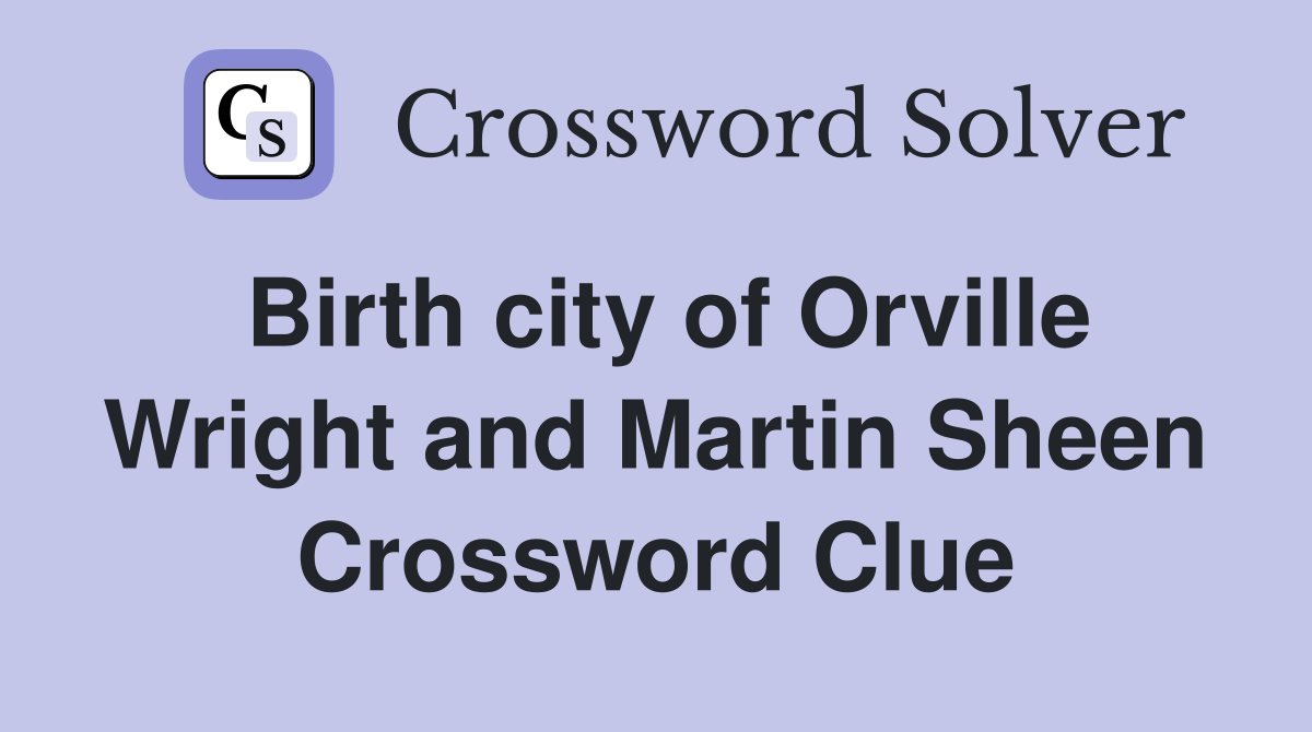 Birth city of Orville Wright and Martin Sheen Crossword Clue Answers