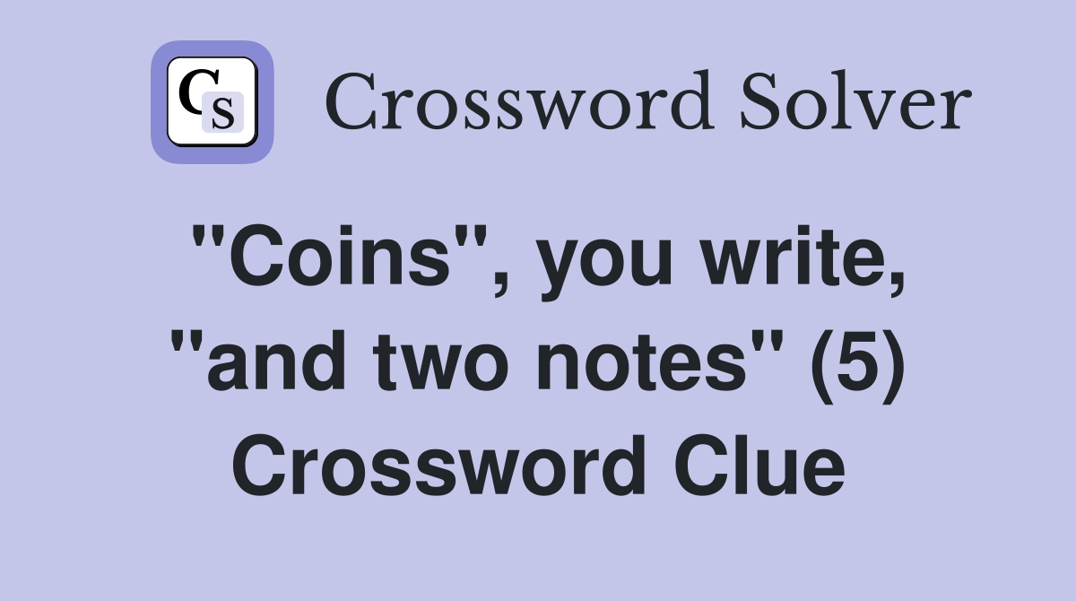 quot Coins quot you write quot and two notes quot (5) Crossword Clue Answers
