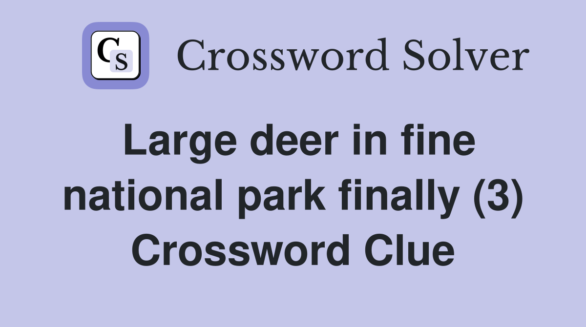 Large deer in fine national park finally (3) Crossword Clue Answers