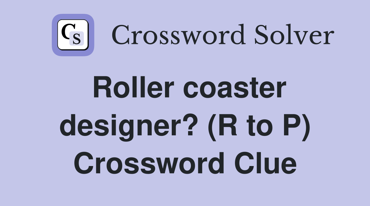 Roller coaster designer? (R to P) Crossword Clue Answers Crossword