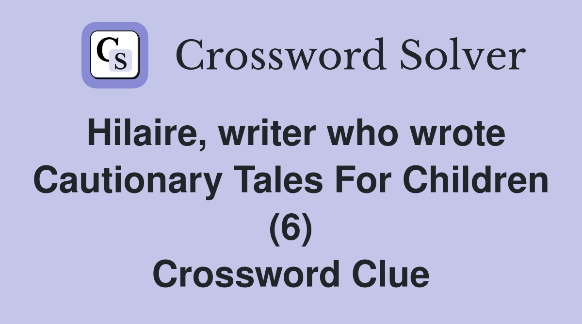 Hilaire writer who wrote Cautionary Tales For Children (6) Crossword