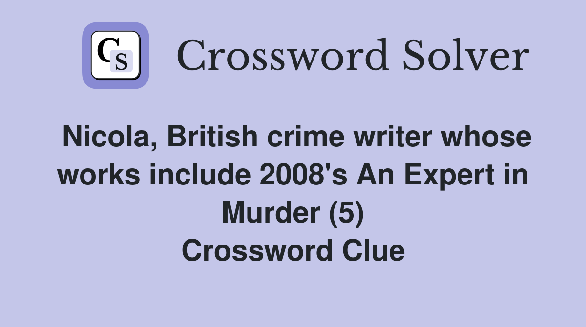 Nicola British crime writer whose works include 2008 #39 s An Expert in