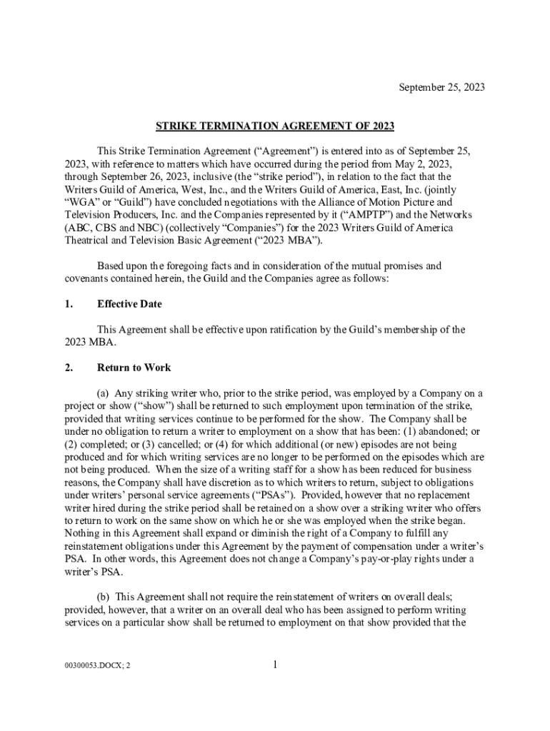 Fillable Online Writers Guild reaches tentative agreement with