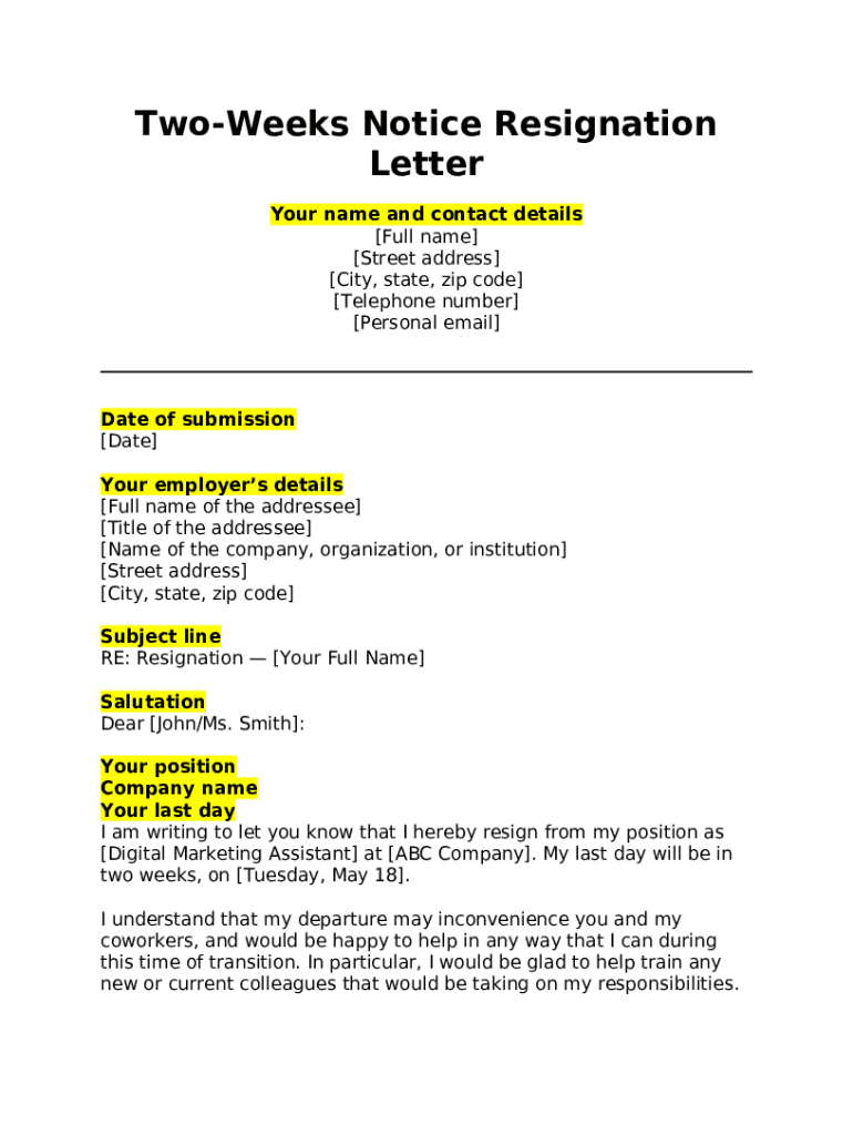 Two Weeks Notice Letter 10 Templates with Writing Guide Doc Template