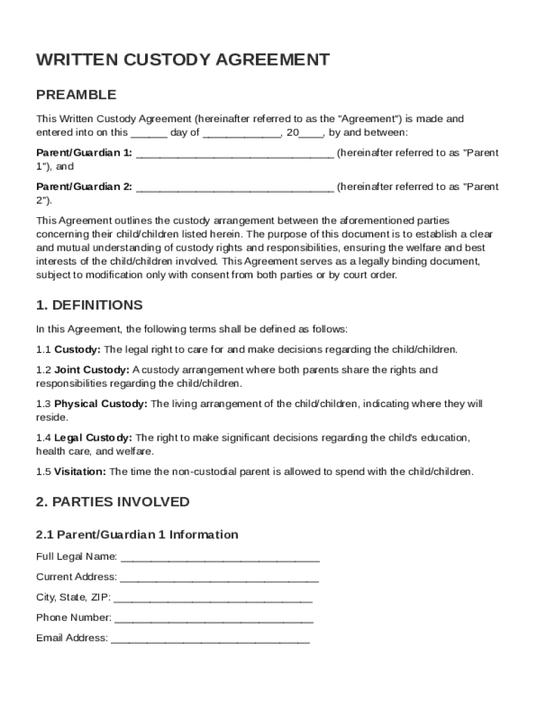 Written Custody Agreement Template: Fill out sign online DocHub
