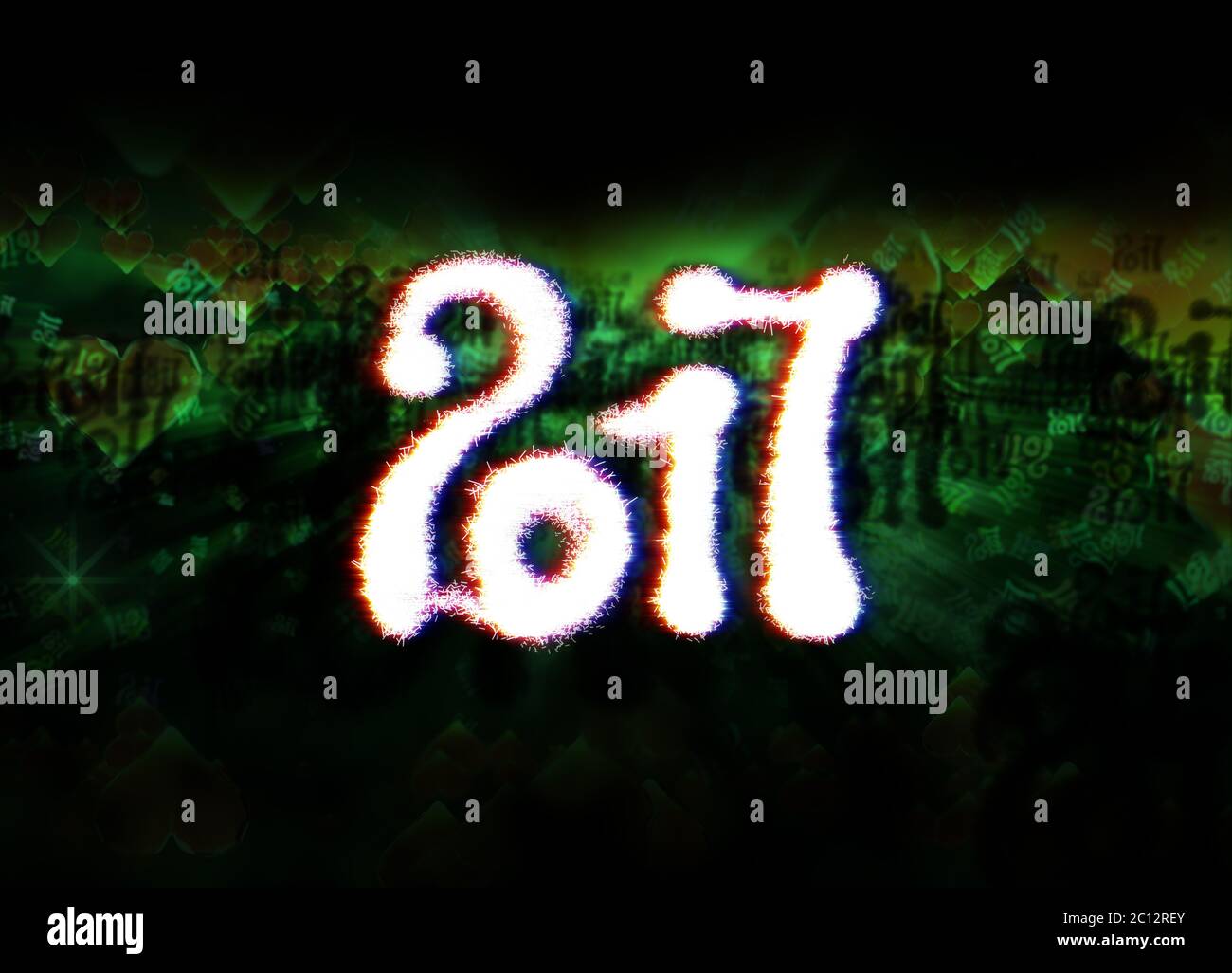 Happy new year 2017 isolated numbers written with light on bright bokeh