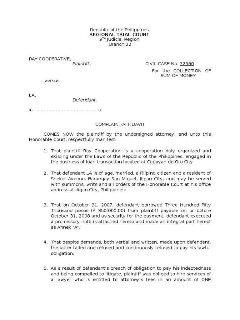 Sample Answer For Civil Case PDF Pleading Lawsuit