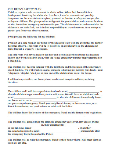 Free Printable Safety Plan Templates PDF Childrens Teens Students