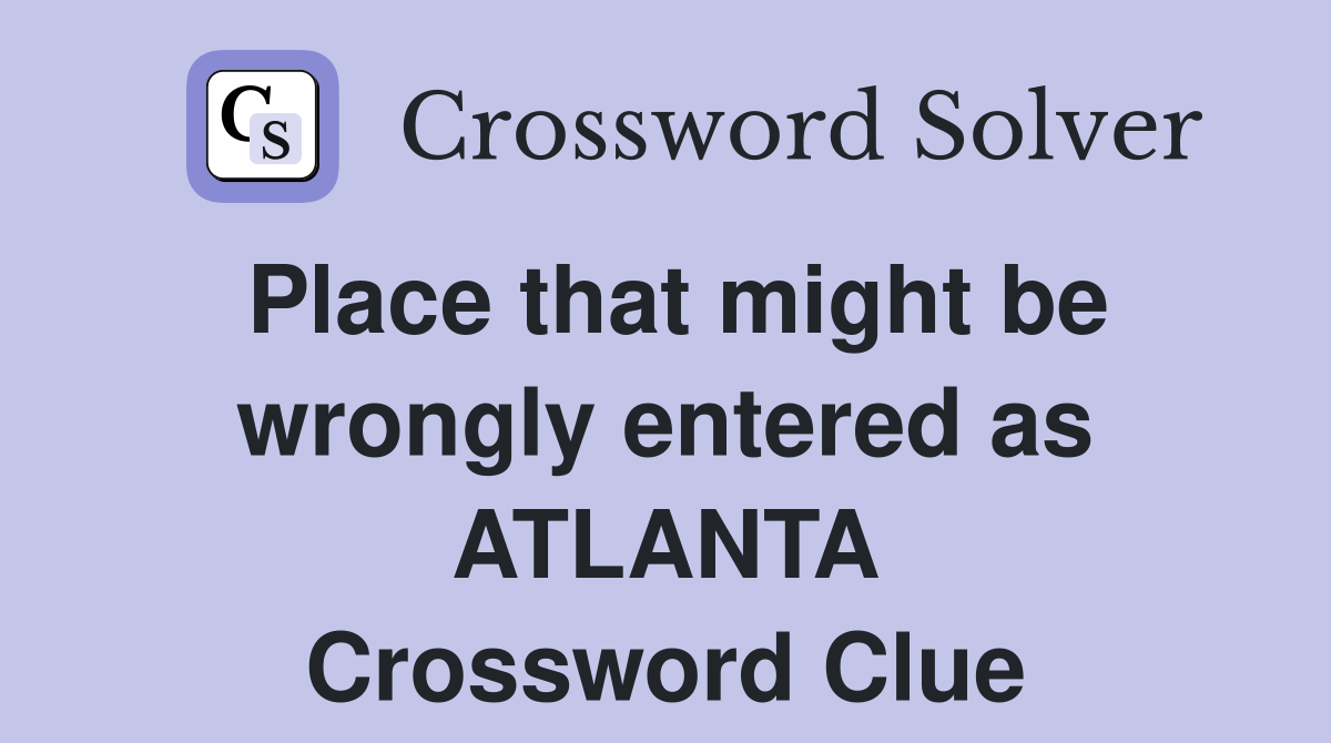 Place that might be wrongly entered as ATLANTA Crossword Clue Answers