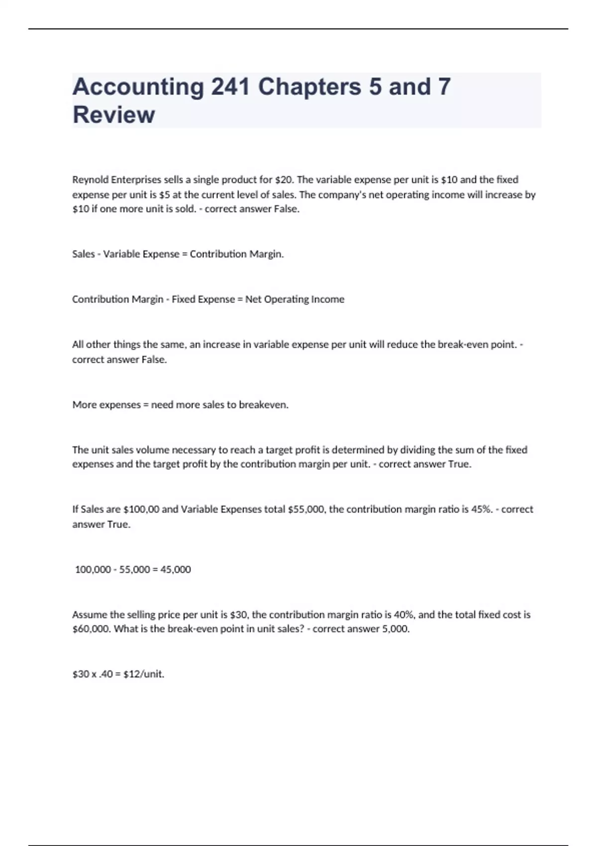 Accounting 241 Chapters 5 and 7 Review 2023/2024 updated to pass WRT