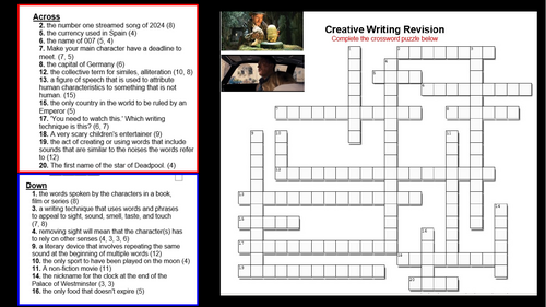Creative Writing CROSSWORD Teaching Resources