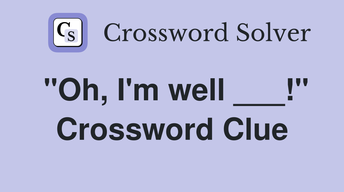 quot Oh I #39 m well quot Crossword Clue Answers Crossword Solver