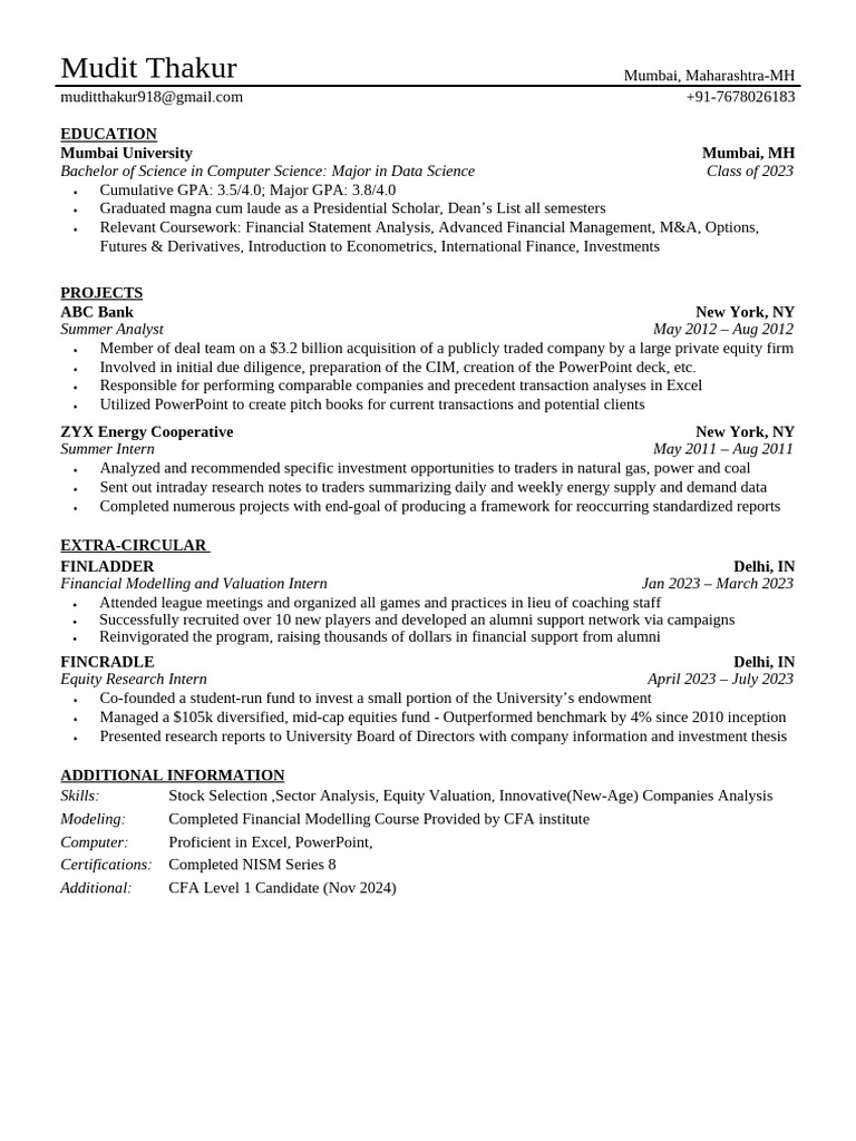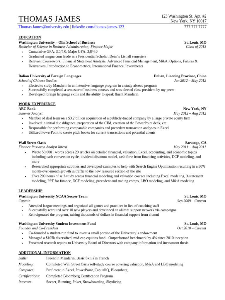 WSO Undergrad Resume Template PDF Mergers And Acquisitions