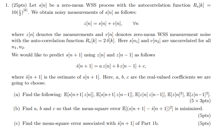 Solved (25pts) Let s n be a zero mean WSS process with the Chegg com