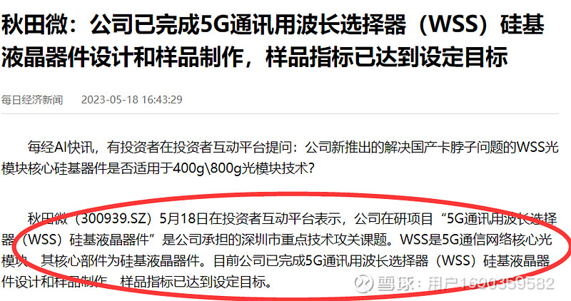 错过东田微,不要再错过秋田微,光模块核心零部件WSS。 韭研公社