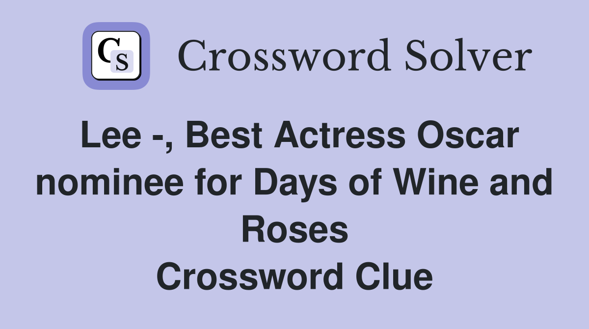 Lee Best Actress Oscar nominee for Days of Wine and Roses