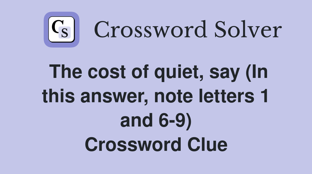 The cost of quiet say (In this answer note letters 1 and 6 9