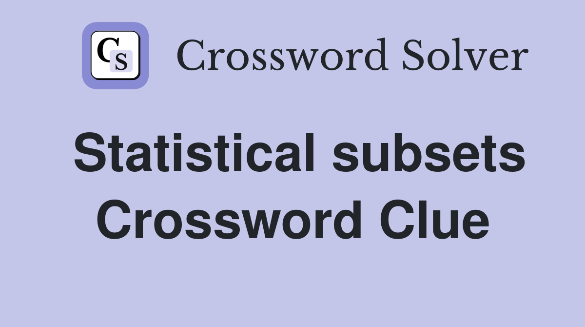 Statistical subsets Crossword Clue Answers Crossword Solver