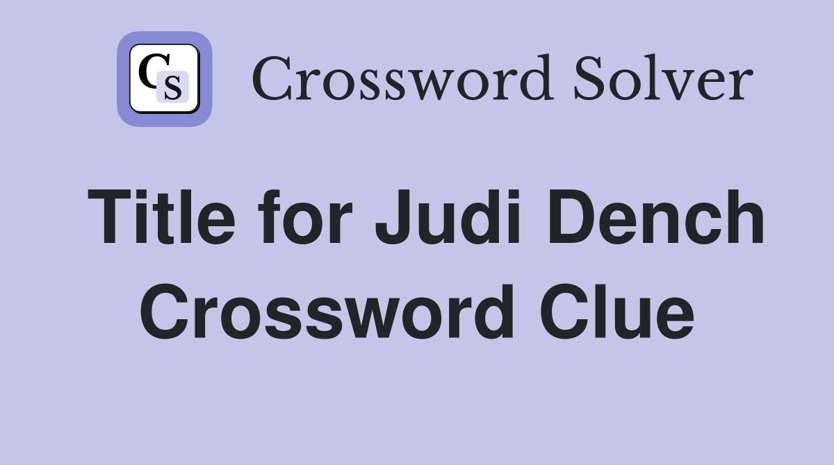 Title for Judi Dench Crossword Clue Answers Crossword Solver