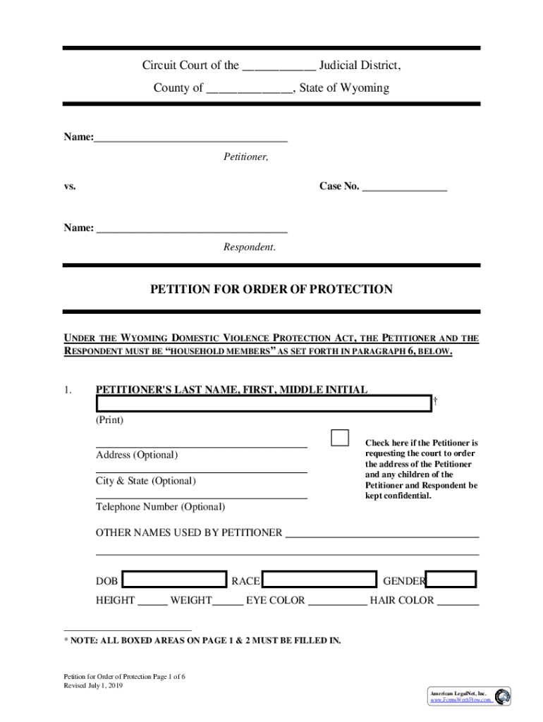 Fillable Online petition for order of protection Wyoming Judicial